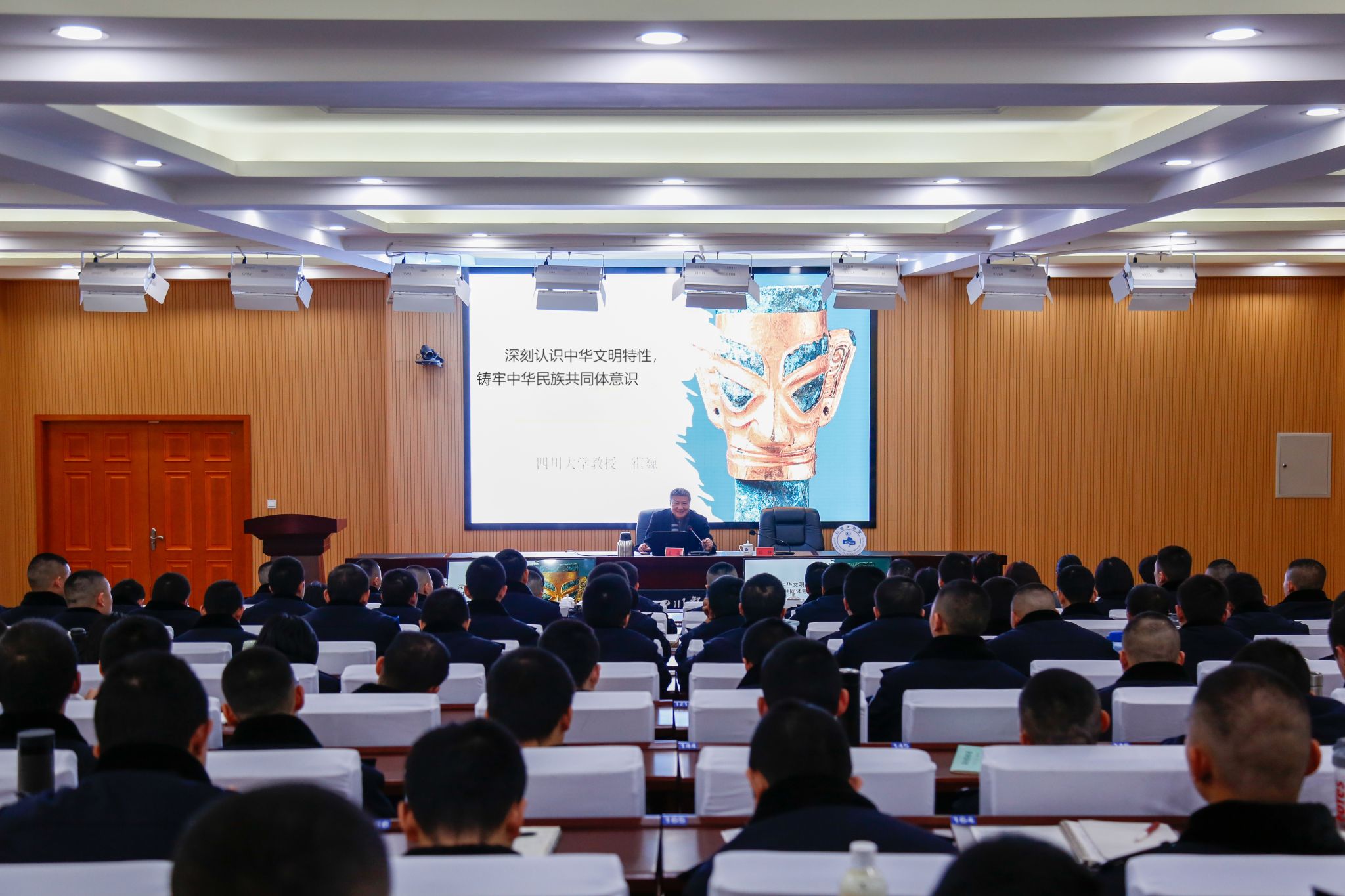 12月26日,教育部“长江学者”特聘教授、四川大学杰出教授、中国藏学研究所所长、铸牢中华民族共同体意识研究基地主任霍巍教授做客 “川警大讲堂”之“名家讲堂”,在成都校区作题为《深刻认识中华文明特性 铸牢中华民族共同体意识》的专题讲座。