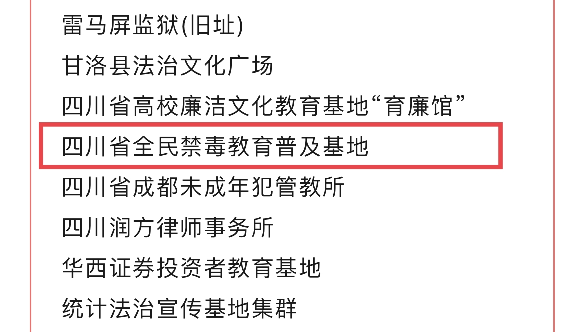 学校“四川省全民禁毒教育普及基地”(青少年法治教育类)等在内的80个基地,从240个候选基地中脱颖而出成功入选。