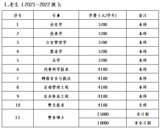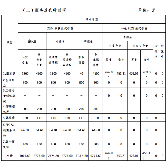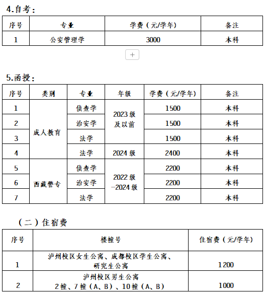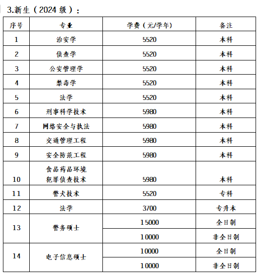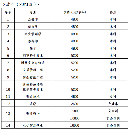 四川警察学院关于2024-2025学年学生收费有关事项的通知