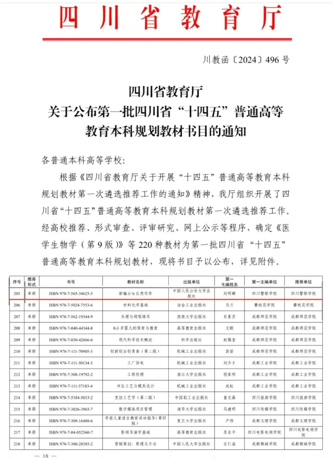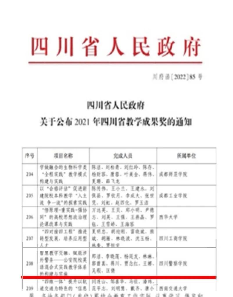 持续推进通识课程“金课”建设,紧贴公安教育实际,在教育教学各环节强化“学生中心、产出导向、持续改进”的教育理念,逐步形成通识课程与专业课程相互依托,协同发展的通识课程体系,将价值塑造、知识传授、能力培养融入通识教育教学全过程,着力帮助学生树立融通思维,构建多维度、可迁移的知识体系。2020年以来,公开出版教材4部、校级“十四五”规划2部,其中《新编公安应用写作》获第一批四川省“十四五”普通高等教育本科规划教材,被四川省普通本科高等学校应用人才培养指导委员会、四川省应用型本科高校联盟列为首届优秀教材。“大学英语”和“大学语文”获评省级课程思政示范课程;“实用警务英语”等5门课程获评四川省一流本科线上课程。2022年“智慧教学交融、赋能涉外警务——公安院校英语混合式实践教学体系的构建与实施”获四川省高等教育教学成果奖二等奖。