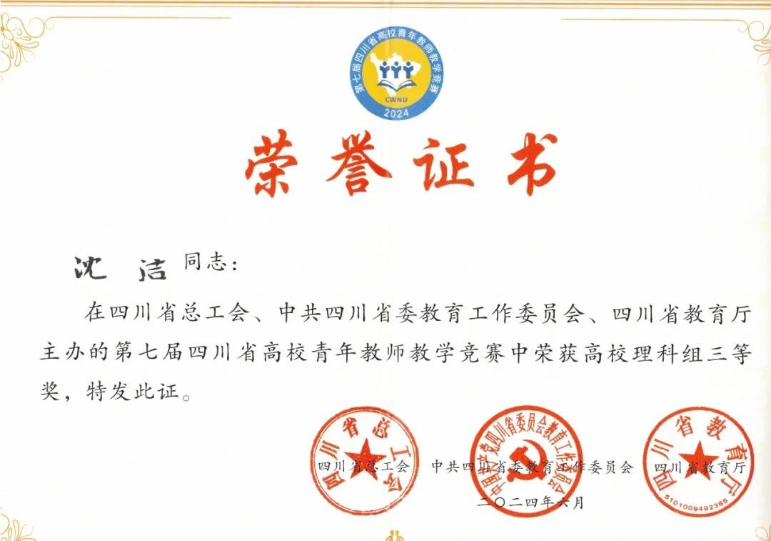 加强教师队伍建设,把师德师风作为评价教师队伍素质的第一标准,强化教育家精神引领,提升教师教书育人能力,健全师德师风建设长效机制,深化教师队伍改革创新,争做新时代“四有”好老师和“四个引路人”,教师在各级各类教学竞赛获得良好成绩。荣获四川省教育厅主办的“四川省英语教学课程思政比赛”三等奖1项,“第二届umoocs基于慕课的混合式教学优秀案例”三等奖1项,外研社杯四省赛区英语课件大赛三等奖;先后有2个教学团队获四川省普通高校外语课程思政教学比赛二等奖, 1名教师获第八届全国高等院校英语教师教学基本功大赛省部级一等奖、国家级二等奖,获四川省高校教师教学创新大赛三等奖1 项,四川省高校青年教师教学竞赛三等奖2项。